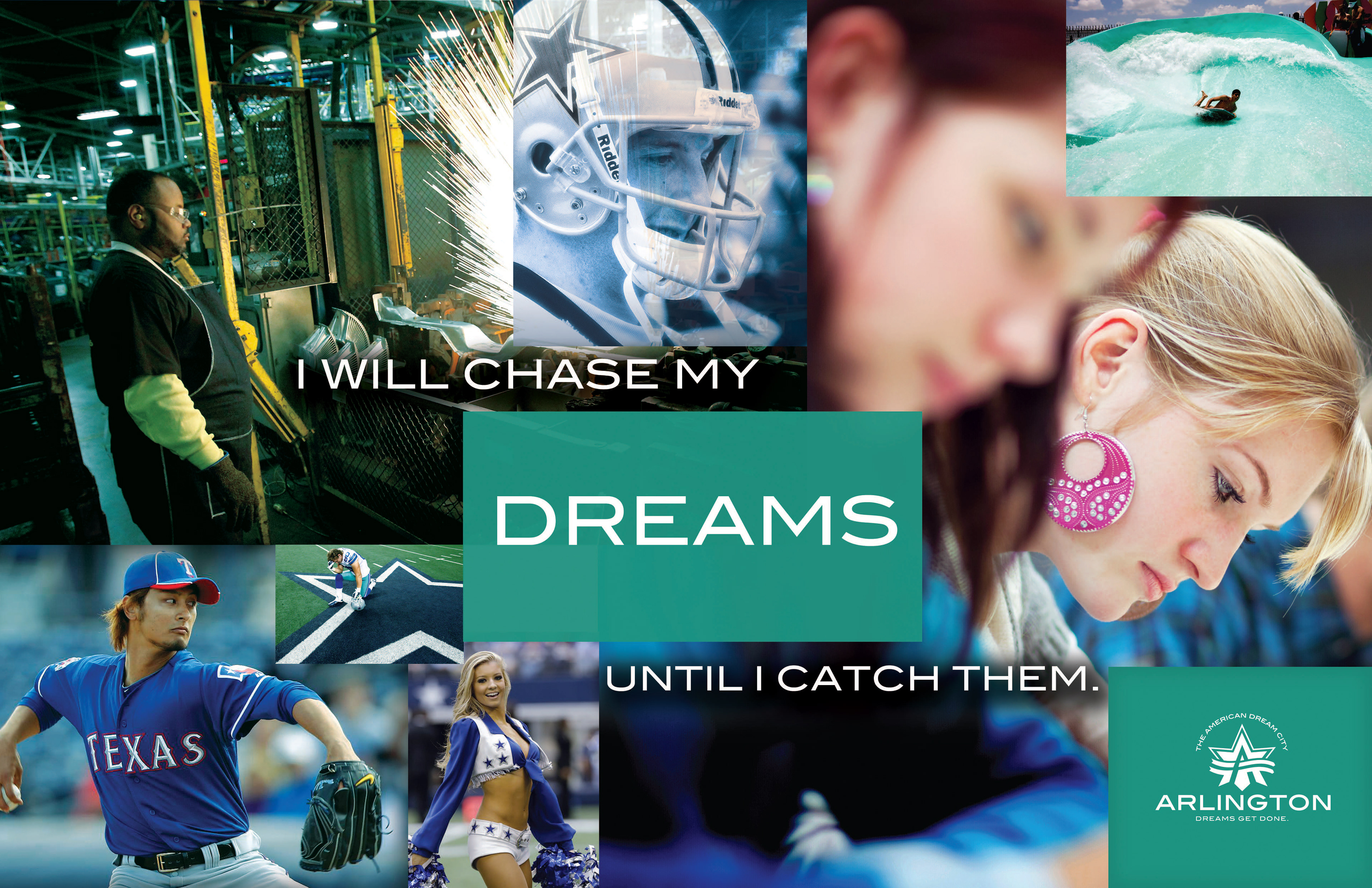 Building the Arlington brand was no small task. I partnered with Jeff Miraglia, Creative Director of Mindset, Inc. to take the research, vision and strategy he developed and craft it visually into the American Dream City. Along the way, Jeff provided the backbone, guidance and voice for what he learned from the people of Arlington, Texas. I lent my talent in presentation design, color theory, marketing and visual expression to walk down the path of creation with him.